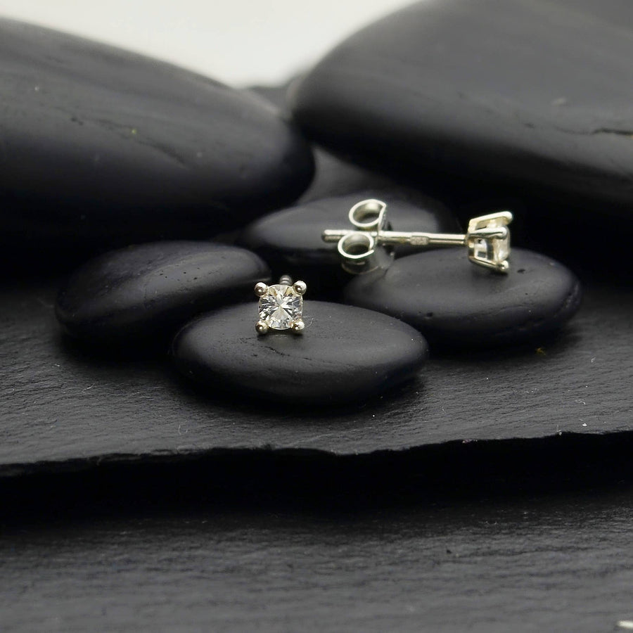 Sterling Silver Solitaire Post Earrings with Nano Gem 3x3mm