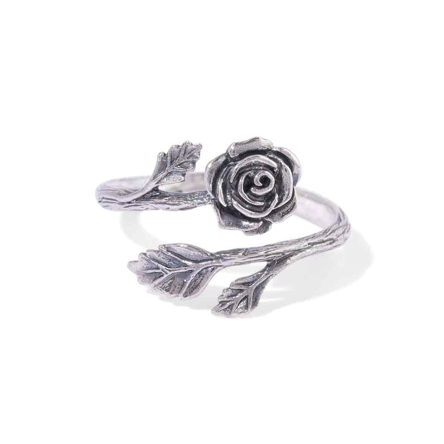 Silver or Bronze Adjustable Dogwood Flower and Leaf Ring