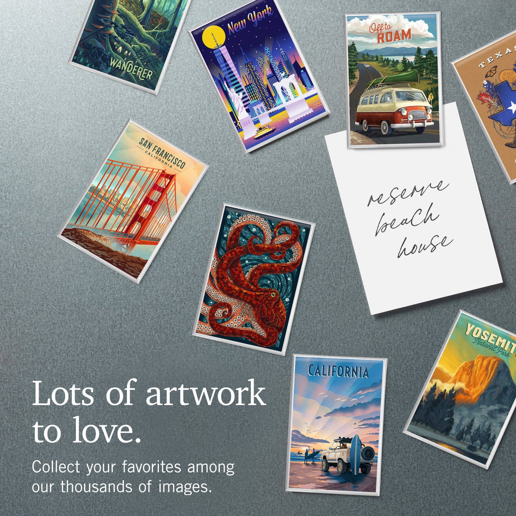 Our Magnets feature our artwork on quality materials in vibrant full color. We use eco-friendly ink, FSC certified paper, recycled materials, sourced responsibly and planet friendly. Made in USA, supporting domestic production. • Eco-friendly non-toxic ink • FSC certified paper • Super strong magnet • UV Resistant, will not fade • 100% Made in America •