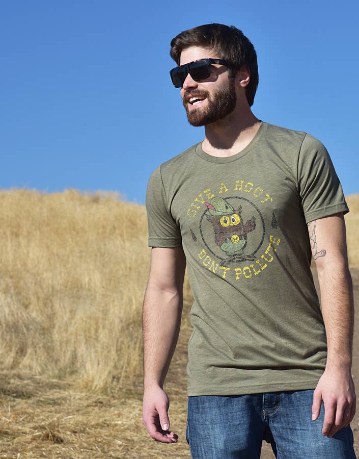 Give a Hoot Don't Pollute! Show your support with this throwback on our popular tri-blend Crewneck Tee. All Woodsy Owl products are officially licensed with the US Forest Service.